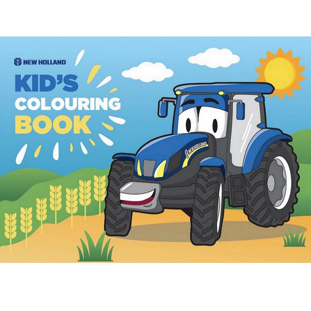 Kids 12 page colouring book with 12 New Holland Tractor designs to colour.